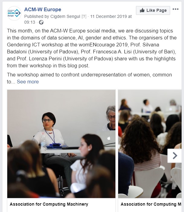 - The blog post where the organisers of the Gendering ICT workshop at the womENcourage 2019, Prof. Silvana Badaloni (University of Padova), Prof. Francesca A. Lisi (University of Bari), and Prof. Lorenza Perini (University of Padova) shared with us the highlights from their workshop.