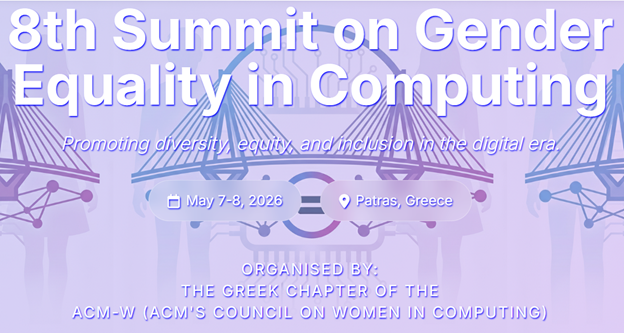 The 8th Summit on Gender Equality in Computing (GEC 2026) takes place on 7–8 May 2026 in Patras, Greece, hosted by the Greek Chapter of ACM-W. This free, inclusive event brings together researchers, students, and professionals to advance gender equity in computing. Early-career participants can present at the Poster & Demo Session, with travel grants of up to €300 available for accepted presenters. Read the full article on the ACM-WE blog for all the details on how to register and submit your work.